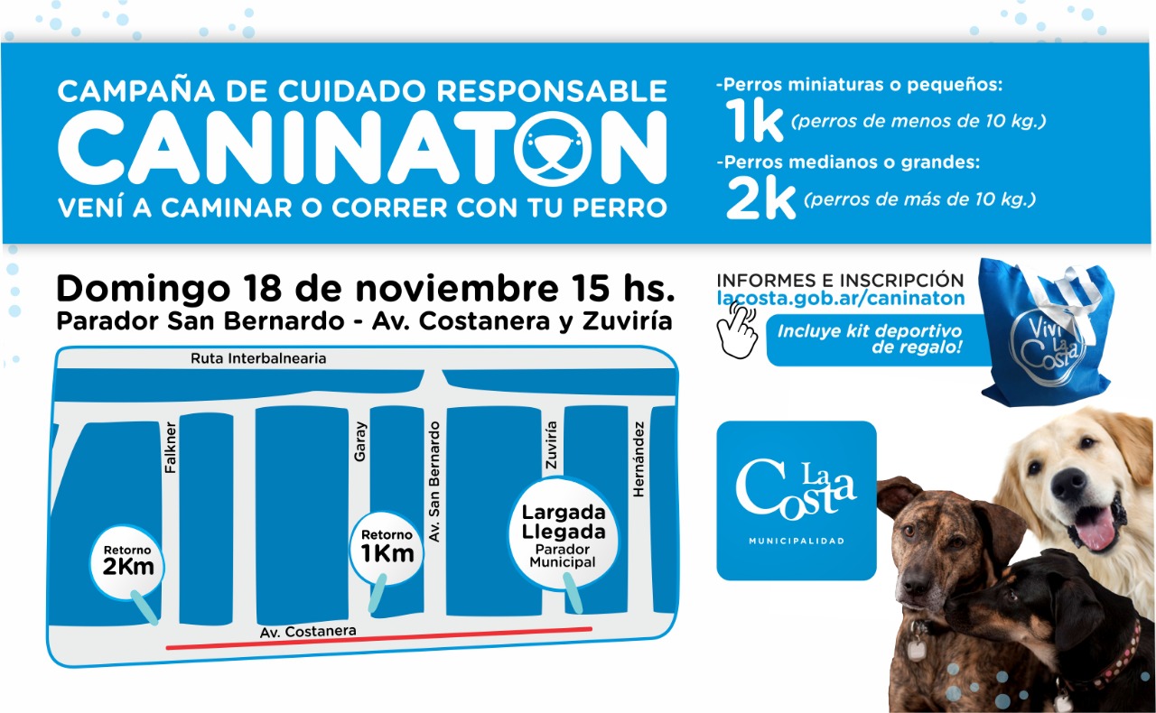 La Municipalidad de La Costa continúa fomentando el cuidado responsable de las mascotas. En esta oportunidad, se llevará adelante este domingo 18 la primera corre caminata con perros en la localidad de San Bernardo y el dibujo del recorrido ya fue definido.