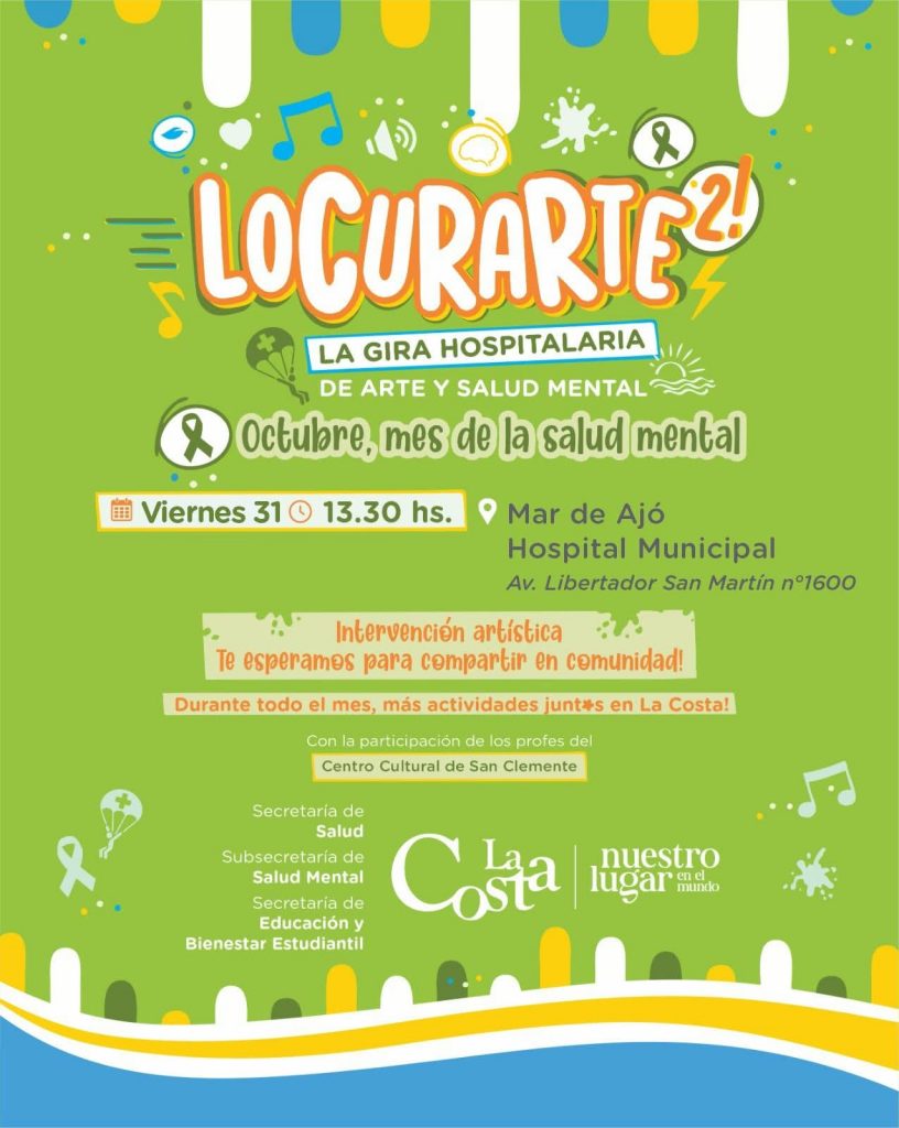 Durante todo el mes de octubre, el Partido de La Costa llevó adelante la propuesta “Locurarte”, una iniciativa impulsada por la Subsecretaría de Salud Mental que recorrió los tres hospitales del distrito con actividades artísticas, intervenciones colectivas y espacios de encuentro comunitario.