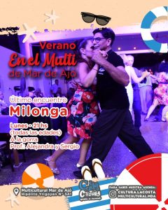 La Municipalidad de La Costa llevará adelante, en el Espacio Multicultural de Mar de Ajó el último encuentro de milonga de la temporada, una propuesta abierta a la comunidad destinada a promover el tango como expresión cultural y espacio de encuentro intergeneracional.